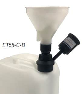 Smart waste cap funnel with ball valve and 1 charcoal cartridge filter adapter for can of S55